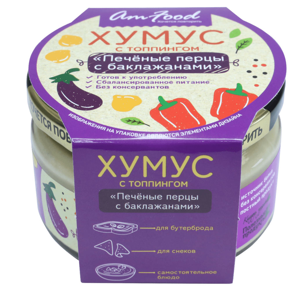 Топпинг из печёных перцев и баклажанов создает прекрасный дуэт с хумусом, приготовленным по классическому рецепту. Насыщенный вкус раскрывается в каждой ложке благодаря сбалансированному составу и специям. Природность и натуральность вкуса восточной закуски без консервантов сделает ваши салаты полезными и питательными, если добавить её в качестве заправки. Намазав хлеб, хлебцы или лепешки хумусом, и дополнив это другими компонентами, у вас получатся бутерброды, которые порадуют всю семью. Готовая закуска послужит замечательным гарниром для ваших мясных блюд, добавив яркие вкусовые акценты. На вашем столе будет праздник вкуса и вы получите истинное удовольствие от завтрака, обеда и ужина.