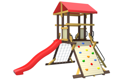 Игровой комплекс для дачи "Классик" предназначен для активного отдыха и физического развития детей, обеспечивающий им безопасное пространство для игр на свежем воздухе, что альтернативно заменяет обычную городскую площадку и занимает меньше места. Это универсальное решение для благоустройства дачи, сочетающее развлечение и спорт. Изготовлен из клееного бруса сечением 90 на 90 милиметров и сухой строганной доски различного сечения, обработанных в заводских условиях. Все деревянные детали покрыты износостойкими и атмосферостойкими составами. Весь крепеж оцинкован. Игровой комплекс включает в себя: горку высотой полтора метра и длиной ската три метра; скалодром шириной в полбашни; лестницу с поручнями и дополнительными ручками, для удобства подъёма; тентовую двускатную крышу; ограждения разной ширины; канатную сетку для подъёма на башню.