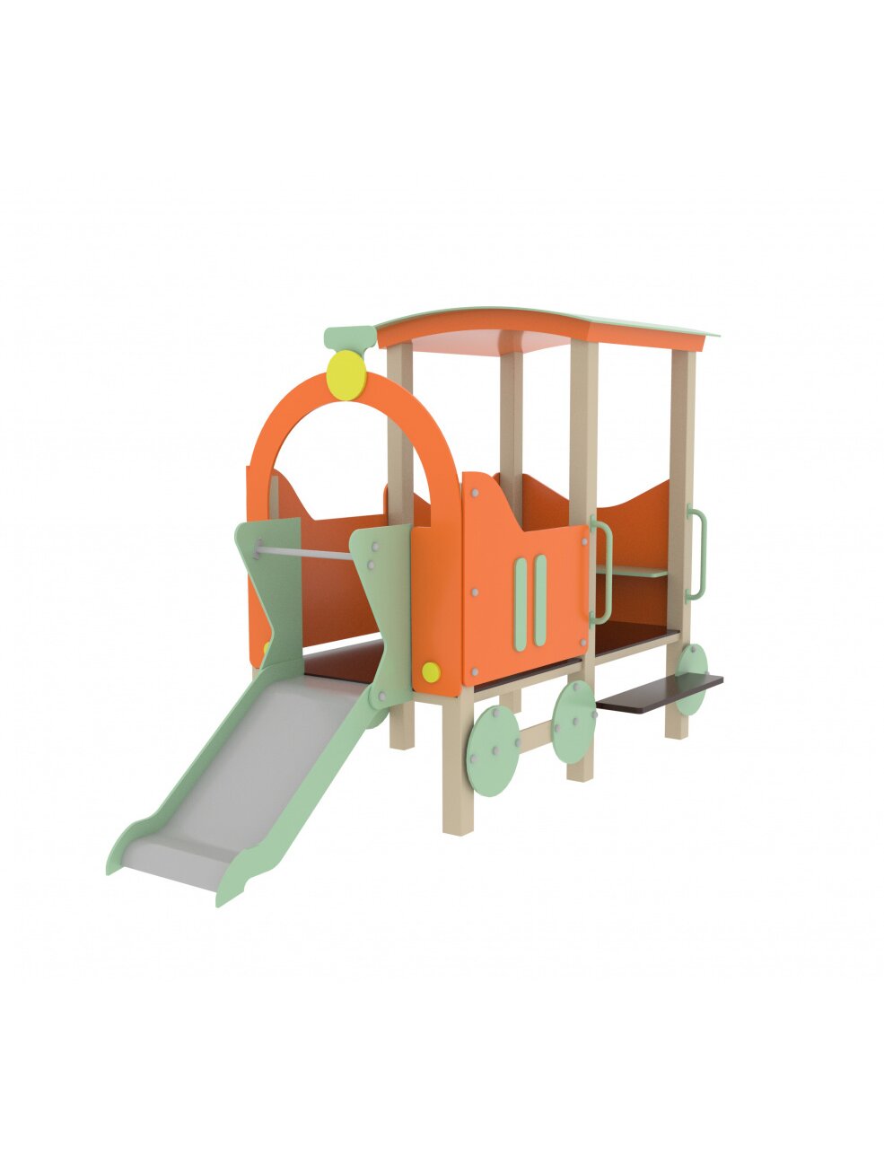 Игровой комплекс "Паровозик" - это тематическое уличное или игровое оборудование (горка, лаз, домик), выполненное в форме поезда, предназначенное для детей от 3 до 7 лет. Он развивает физическую активность, мелкую моторику, координацию движений и воображение, объединяя функции песочницы, лабиринта и лестниц для активного отдыха. Длина - 3000 мм. Высота - 2000 мм. Ширина - 1100 мм.