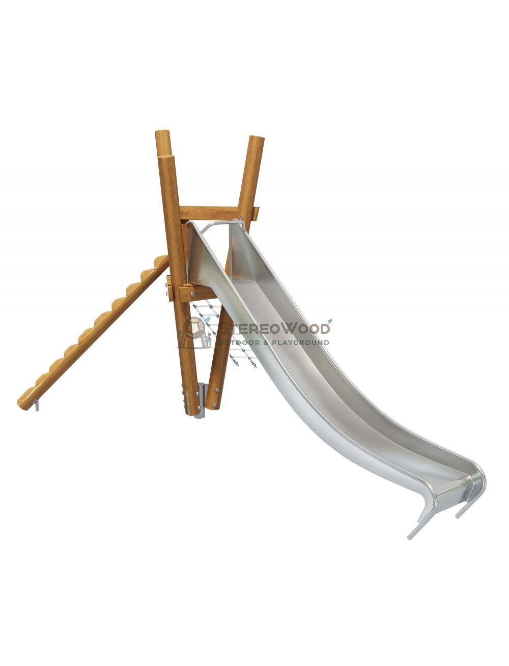 Игровой комплекс "Сардиния" разработан для малышей в возрасте от 3 до 7 лет и является оптимальным решением для организации игровых зон на территории дошкольных учреждений и городских парков. Эта модель сочетает в себе продуманный дизайн и функциональность, обеспечивая детям пространство для активных и безопасных игр. Основу комплекса составляет треугольная платформа, к которой примыкает прямая горка высотой 1500 мм, изготовленная из нержавеющей стали AISI 304. Также в комплекс включены гибкий и стандартный лазательные элементы, выполненные из прочного армированного каната диаметром 16 мм. Эти элементы способствуют развитию моторики, гибкости и уверенности в движениях у детей. Конструкции из бревен робинии защищены специальным алкидным составом, который предотвращает повреждения от влаги и солнечных лучей, сохраняя природную красоту дерева. Размеры комплекса - 4900*3400*3000 мм, при этом зона безопасности составляет - 8,4*6,4 м, что предоставляет детям достаточно места для игр без риска для здоровья.