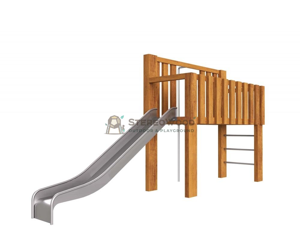 Игровой комплекс "Тревизо" представляет собой идеальное решение для обустройства игровой зоны для детей в возрасте от 7 до 14 лет. Этот комплекс специально разработан для поддержки активного образа жизни юных исследователей, предлагая им многофункциональное пространство для игры, развития и приключений. "Тревизо" включает в себя игровую платформу, прямую горку высотой 1500 мм, шест для лазания и стремянку. Эти элементы предназначены не только для развлечения, но и для физического развития детей, улучшая их координацию, силу и ловкость. Прямая горка станет особенно любимым местом для детей, предоставляя им захватывающие ощущения от спуска. Каркас и обшивка выполнена из дерева. Покрытие - деревозащитный декоративный глубокопроникающий состав на алкидной основе. Стандартные цвета - орех, орегон, махагон. Прямая горка, поручни, перекладины выполнены из нержавеющей стали - AISI 304. Длина - 5700 мм. Ширина - 1500 мм. Высота - 2800 мм. Критическая высота падения - 1500 мм.