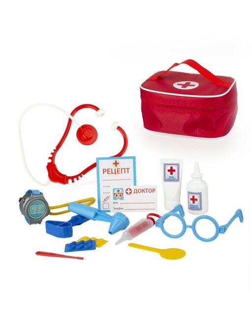 Игровой набор "Доктор" включает в себя полный набор необходимых аксессуаров для маленького врача, которые создадут увлекательную атмосферу игры. Набор предназначен для сюжетно-ролевых игр, способствует развитию воображения. Играя, ребёнок развивает моторику рук и координацию движений, осваивает базовые социальные и бытовые навыки. Комплектация: мазь, спрей, очки,термометр, шприц, ларингоскоп, молоток, лопатка окулиста, тонометр, таблетки круглые, таблетки овальные, скальпель,фонендоскоп, визитка доктора, рецепты, сумка ПВХ .