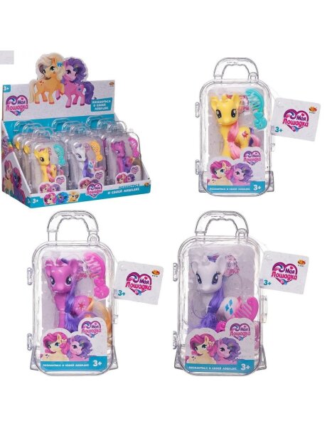 Игровой набор Пони в чемоданчике с аксессуарами это игрушка- пони с разноцветной гривой и хвостом, которая станет отличным подарком для любой девочки. Ее хозяйка сможет расчесывать свою лошадку, делать ее прически, используя расческу и заколки из этого набора. Пони упакована в прозрачный чемоданчик, в котором ее будет удобно хранить и брать с собой. В состав набора входят: пони, расческа, 2 заколки.