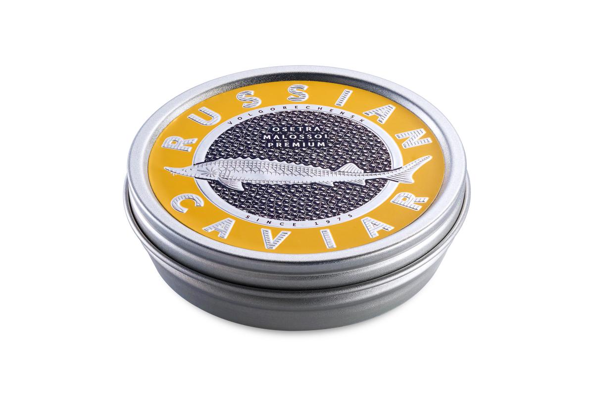 125 граммов премиальной икры сорта Premium в жестяной банке. Эту икру мы получили от осетров возрастом 10-12 лет. Икра с глубоким серым цветом и нежной оболочкой, икринки диаметром 2,5-3 мм.