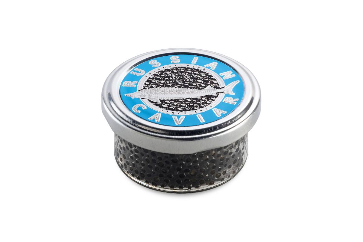 50 граммов отборной икры сорта Selected в стеклянной банке. Эту икру мы получили от осетров возрастом более 15 лет. Крупные, разбористые икринки диаметром 3-4 мм.