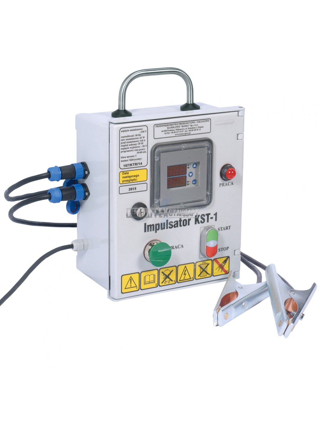 Импульсатор KST 1 применяется для электростимуляция мышц целью улучшения качества мяса, его хрупкости а также предупреждения последствий холодильной судороги. Принцип работы состоит в воздействии электрическим током на мышечную ткань туши, что вызывает судороги мышц. В результате судорог биохимические процессы в мышечной ткани влияют полезно на процесс созревания и качества мяса.