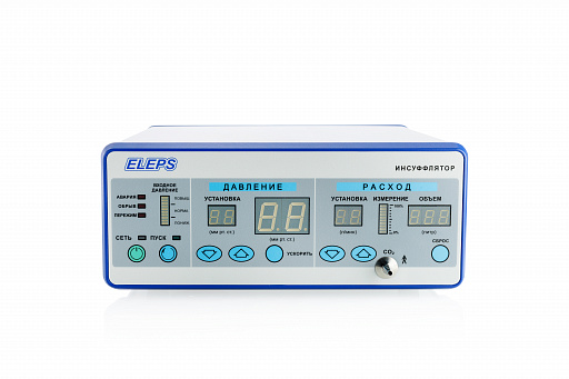 Инсуффлятор с речевым информатором (40 л) предназначен для нагнетания углекислого газа от баллона с жидкой двуокисью углерода высокого давления во внутренние полости человека и автоматического поддержания давления в полости при проведении эндохирургических операций на внутренних органах в операционных отделениях медицинских учреждений. Максимальная скорость подачи газа 40 л/мин. Система форсированной подачи газа при непредвиденной потере до достижения заданного давления. Система сброса при превышении давления выше установленного на 3 мм рт.ст. в течении 10сек. Цифровая индикация установленного абдоминального давления, установленного потока газа. Сигнализация об аварийной ситуации - световая индикация и голосовое информирование.