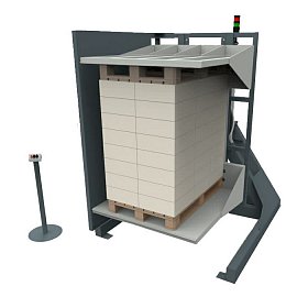 Инвертор паллет (с 2 раздвижными платформами и поворотом) предназначен для работы с паллетами из мешков, коробок, плит и другого штучного груза, не боящегося поворота в пространстве. Цикл работы Инвертора (кантователя) паллет: фиксация груза в инверторе двумя подвижными платформами, поворот паллеты с грузом на 180°, раскрытие подвижных платформ, опускание паллеты для замены поддона и выгрузки. Цикл работы инвертора занимает не более 30 секунд, что с учётом операций загрузки/выгрузки из инвертора соответствует производительности 10 - 20 паллет/час. Грузоподъемность - 1200 кг / 2000 кг. Максимальный размер паллет - 1200 x 1200 мм. Угол поворота паллеты - 180°. Потребляемая мощность - 3 ÷ 5 кВт. Напряжение электропитания - 3ф / 380 В / 50 Гц.Ориентировочные габаритные размеры - 2200 x 2200 x 2500 мм.