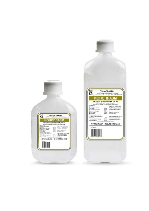 Ионоплазм - это изотонический сбалансированный раствор электролитов для внутривенного введения, состав которого максимально приближен к плазме крови человека. Он используется для восполнения дефицита жидкости, лечения обезвоживания, коррекции кислотно-основного баланса (при ацидозе) и при шоковых состояниях. Поставляется в пластиковых контейнерах/флаконах (обычно по 250 или 500 мл) для инфузий.