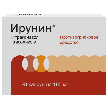 Ирунин - это эффективный противогрибковый препарат широкого спектра действия на основе итраконазола, относящийся к группе триазолов. Он применяется для лечения грибковых инфекций кожи, ногтей (онихомикозов), слизистых оболочек (вульвовагинальный кандидоз), а также системных микозов (аспергиллез, кандидоз и др.). Ирунин выпускается в форме твердых желатиновых капсул по 100 мг, упакованных в контурные ячейки по 5, 6, 7, 10, 14 или 15 штук.