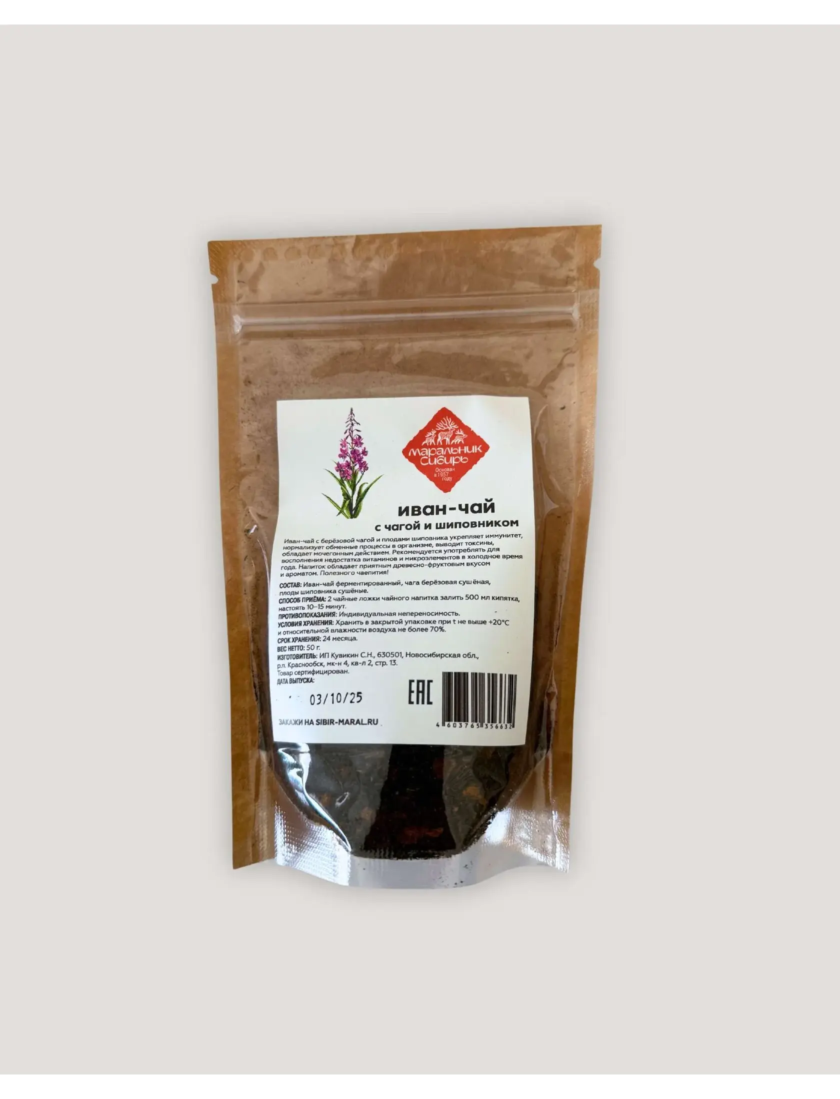 Состав: Иван-чай ферментированный гранулированный, чага берёзовая сушёная, плоды шиповника сушёные.