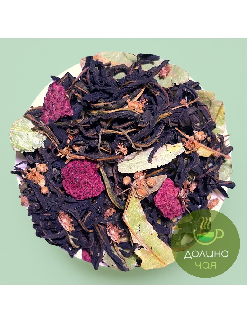 Листовой иван-чай с добавлением ягод малины и соцветий липы. Нежный аромат и приятный вкус. Настой цвета темного янтаря, богатый и насыщенный. Успокаивающий чай расслабляет, снимает стресс. Напиток, приготовленный с липой и малиной помогает при лёгких головных болях, расстройствах пищеварения, симптомах простуды. Подходит в качестве способа завершить напряжённый день. Можно пить в любое время суток, так как чай не содержит кофеин.
