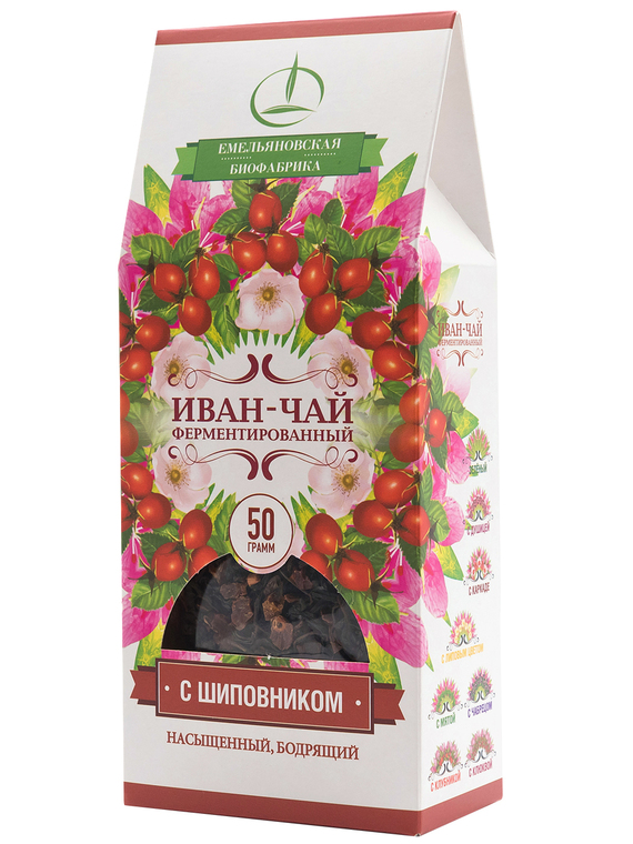 Состав: листья иван-чая (кипрей узколистный, Epilobium angustifolium L.) ферментированные, плоды шиповника.
