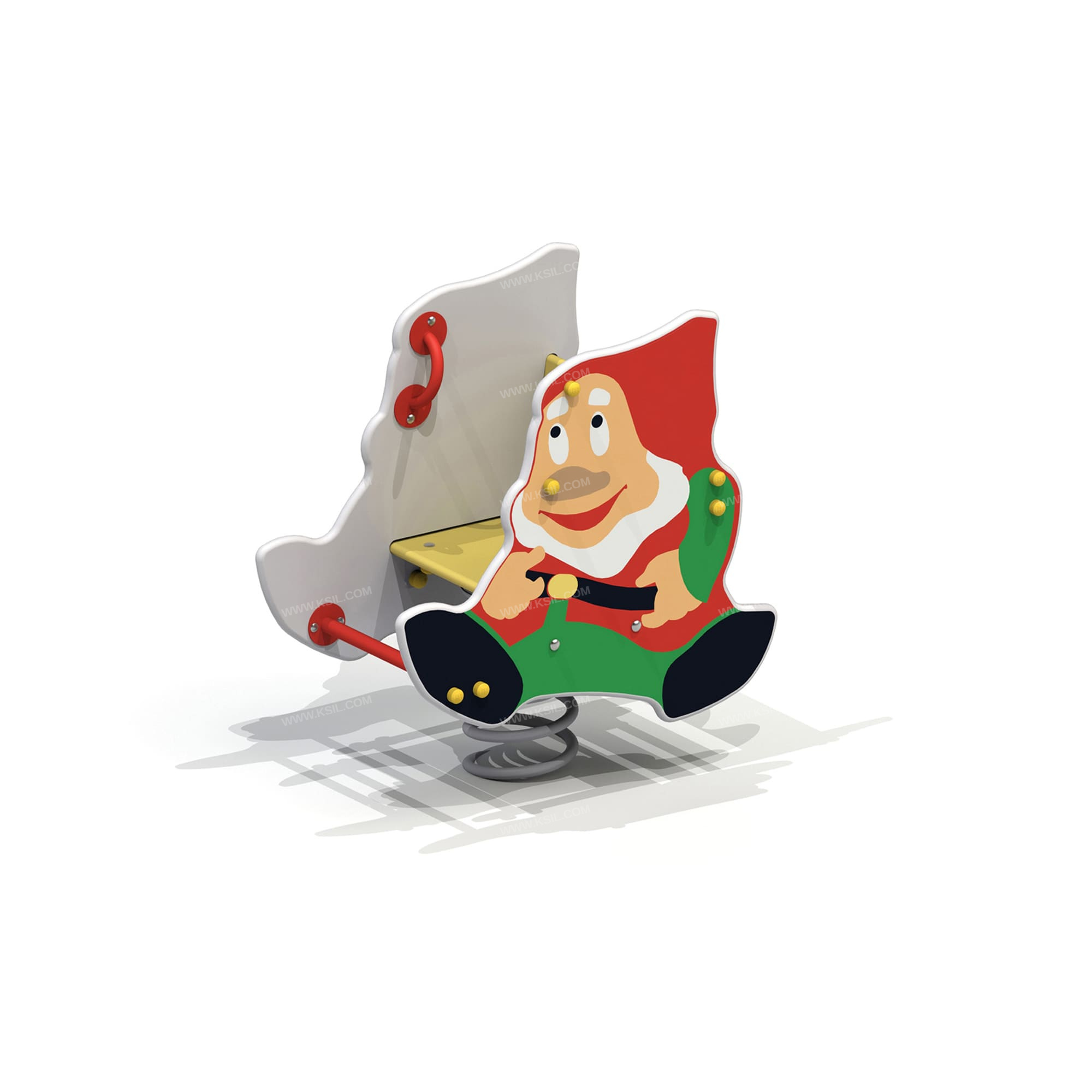 Качалка на пружине "Гномик" стилизована под гномика и представляет собой устойчивую конструкцию, обеспечивающую безопасное движение детей. Качалка на пружине состоит из основания, на которое крепиться корпус качалки, опоры для крепления пружины в нижней части, 4-х раскосов, соединяющих опору с опорной плитой, корпуса, сидения со спинкой, опорой для ног, 2-х поручней, перекладины жесткости. Габаритные размеры- 794*442*845 мм. Возрастная группа - от 3 до 7 лет. Ширина зоны безопасности - 3442 мм. Длина зоны безопасности - 3794 мм. Максимальная высота свободного падения - 370 мм.