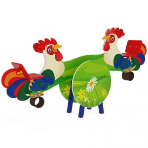 Качели-балансир Петухи - это популярный вид детского игрового оборудования для уличных площадок, представляющий собой конструкцию с сиденьями в виде фигурок петухов на длинной доске, которая качается за счет силы тяжести и отталкивания детей, развивая координацию, равновесие и социальные навыки. Они используются для физического развития и развлечения детей от 4 лет, тренируя вестибулярный аппарат и мышцы. Длина - 2040 мм. Ширина - 366 мм. Высота - 880 мм. Зона безопасности - 4040*2366 мм. Вес - 38 кг.