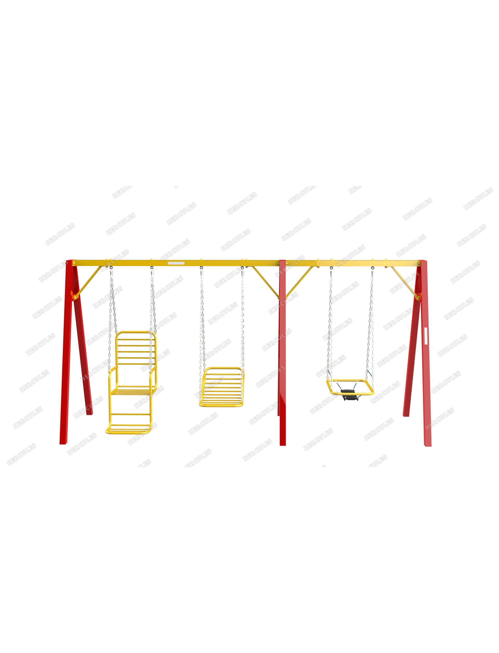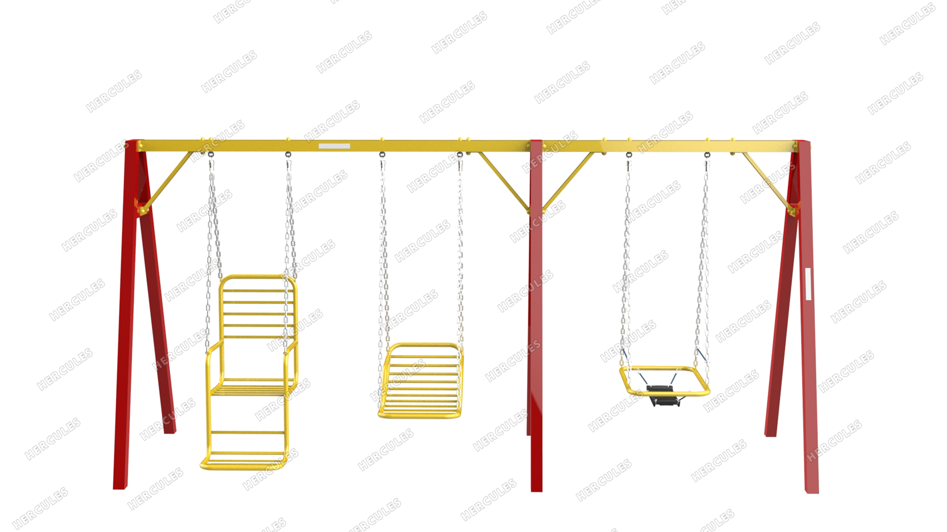 Качели для инвалидов с различными нарушениями опорно-двигательного аппарата №3 предназначены для людей с различными видами поражения опорно-двигательного аппарата. Для раскачивания в качелях возможна помощь сопровождающего лица или самостоятельно пользователем. Конструкция состоит из вертикальных стоек в форме буквы "А", соединенных в верху горизонтально расположенной перекладиной. К перекладине посредством подшипникового узла прикреплены подвесы для качелей и сидения для качания. Предназначено для инклюзивных площадок, для пользователей старше 15 лет. Комплектация: вертикальные наклонные стойки 6 шт., перекладина - 2 шт.; сидения - 3 шт.