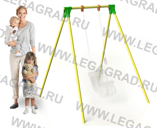Качели (каркас) одиночные подходят для частного пользования, выдерживают максимальную нагрузку в 100 кг. Максимальый вес ребёнка 60 кг.Изготовлены из трубы диаметром 40 мм. Дополнительно необходимо приобрести детские качели или качели для малышей. Бетонирование - под каждую стойку яма 30 * 30 * 35 см, заглубление стойки - 50 см. Размеры - 1,3*1,4*1,65 м.