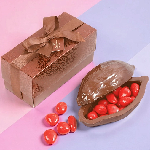 Шоколадный какао-боб — прекрасный сувенир в элегантной упаковке, которую по достоинству оценят только истинные ценители эстетики.
