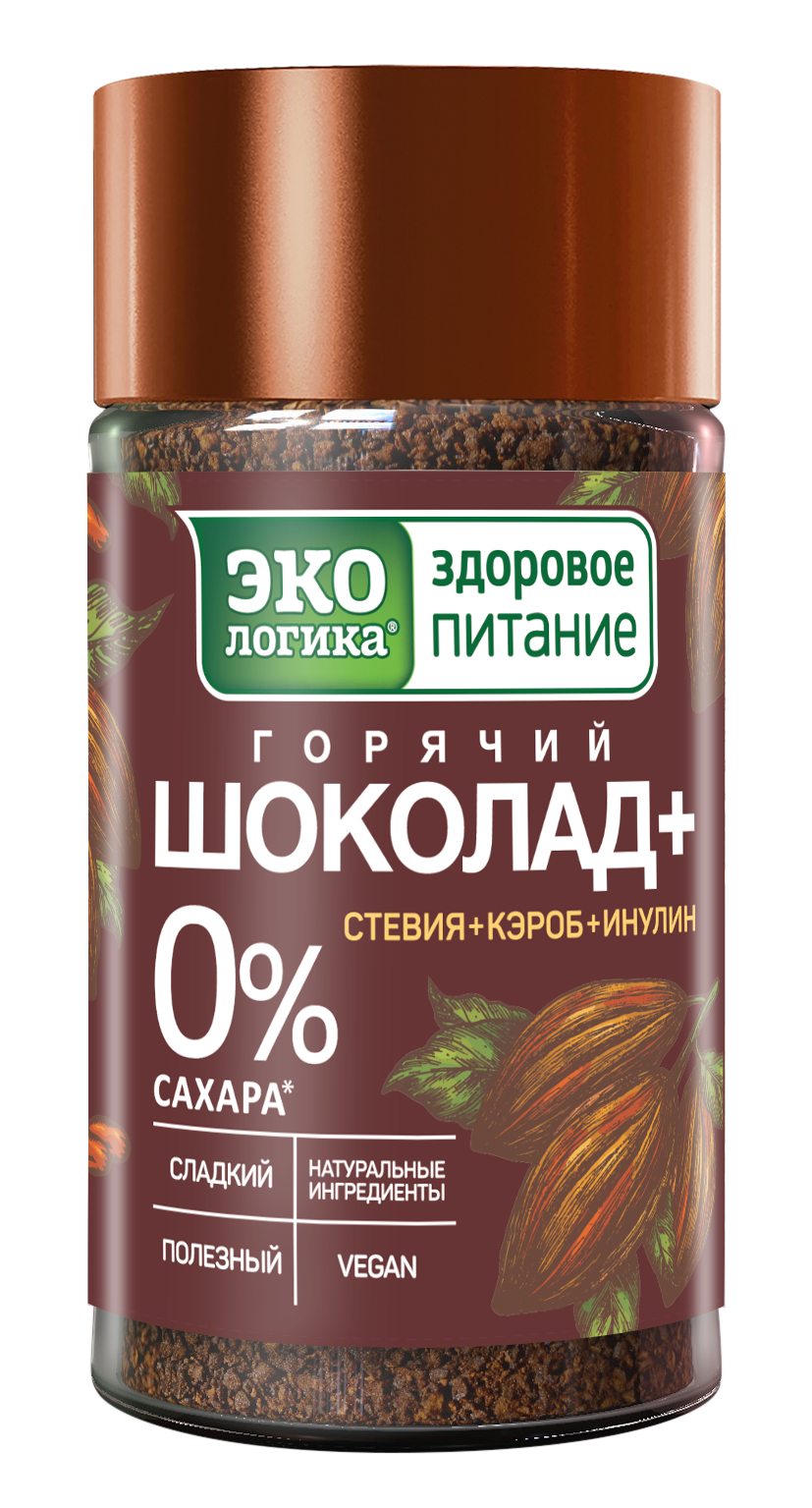 Горячий Шоколад + создан без добавления сахара на основе натуральных компонентов: содержит какао высшего качества, кэроб, пребиотик инулин, а также натуральные заменители сахара стевиозид и эритрит, поэтому идеально подходит всем, кто придерживается здорового образа жизни, а также веганам и людям с непереносимостью лактозы.