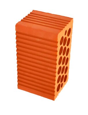 Камень строительный полнотелый с отверстиями - это высокопрочный конструкционный материал (объем пустот обычно до 13%), предназначенный для возведения нагруженных конструкций: фундаментов, цоколей, печей, каминов и несущих стен. Отверстия повышают его теплоизоляцию, снижают вес и улучшают сцепление с раствором, сохраняя при этом несущую способность. Морозостойкость - F75. Водопоглощение - 10 %. Масса кирпича - 4,5 кг. Размер - 250*120*140 мм.