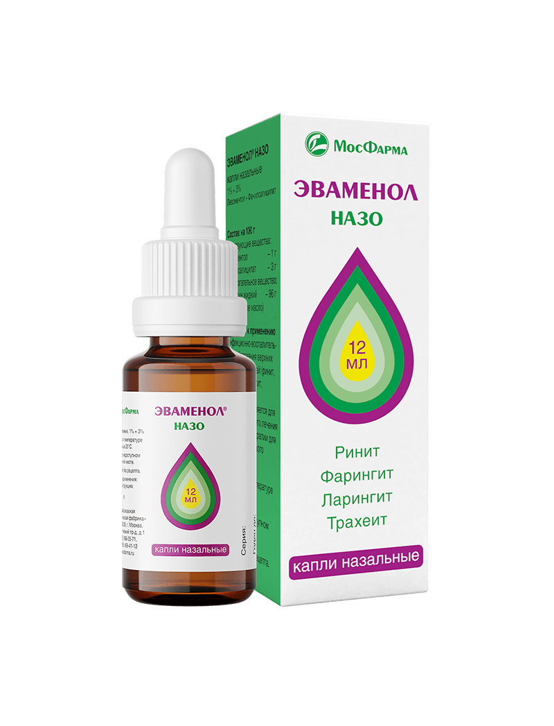 Эваменол Назо обладает комплексным действием и помогает справиться с симптомами насморка и других воспалительных заболеваний дыхательных путей (фарингит, ларингит, трахеит). Капли способствуют улучшению носового дыхания, уменьшают отек слизистой оболочки носа и количество выделений, снимают зуд и боль и создают приятное ощущение прохлады. Эваменол Назо также оказывает местное противовоспалительное и дезинфицирующее действие, за счет чего создается защита от простудных и вирусных заболеваний.