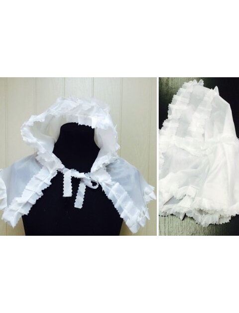 Капор - это специальный головной убор в виде ниспадающего снуда или капюшона, предназначенный для покрытия головы и плеч женщины во время траурной процессии и похорон. Он служит символом уважения, скорби и соблюдения церковных традиций, прикрывая голову в знак смирения перед умершим. Материал - шелк. Цвет - белый.