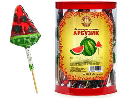 Карамель фигурная на палочке "Арбузик", изделие кондитерское