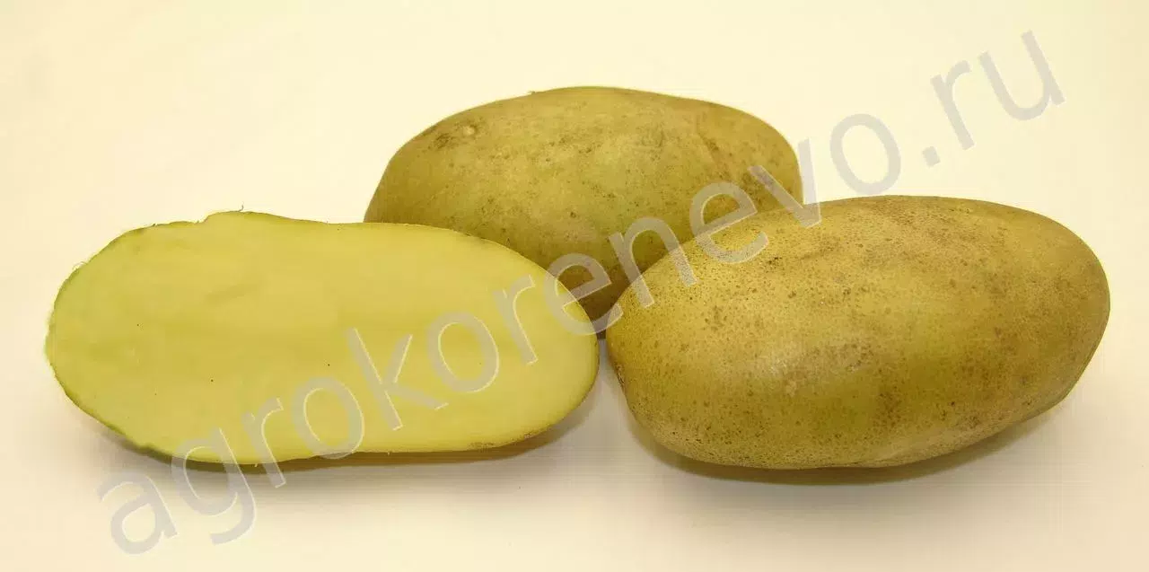 Картофельные клубни округлой и овальной формы, с небольшим числом глазков. Окраска клубней варьируется от желтовато-кремового до коричневатого. Для клубней этого сорта характерна тонкая и гладкая кожура, поэтому очистков при приготовлении блюд очень мало. В сыром виде мякоть картофеля белого цвета, при варке немного желтеет. Особенно это заметно, если при выращивании растения применялись минеральные удобрения: калийные и хлористые.