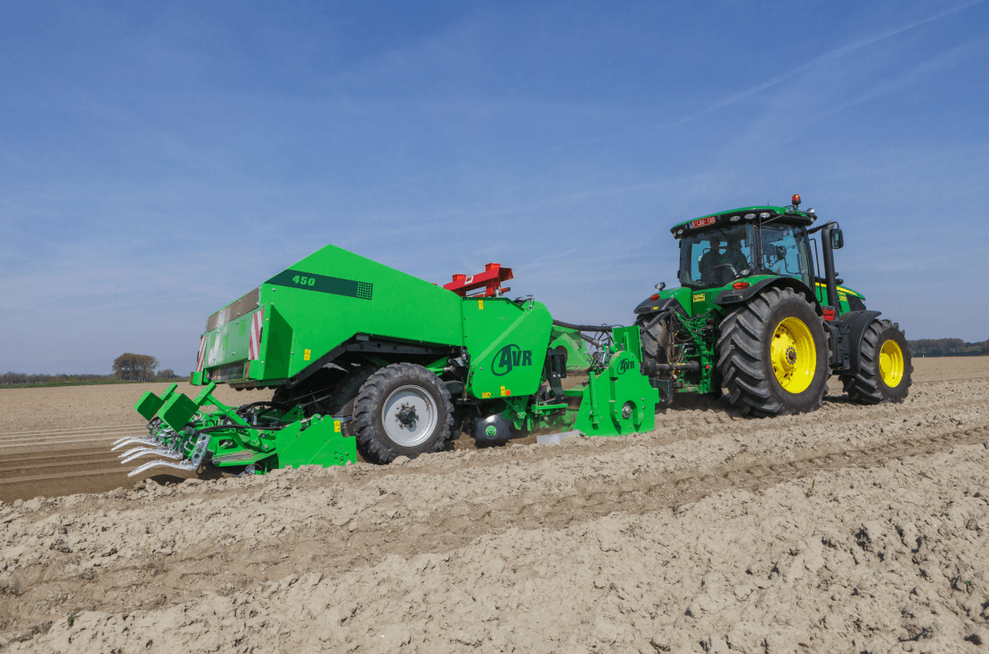 Картофелесажалка AVR CR450M - новая четырехрядная картофелесажалка с механическим приводом от опорных колес. Картофелесажалка AVR CR450M выпускается в модификациях 4х75 и 4х90 и отличается высокой скоростью и точностью посадки картофеля. Бункер картофелесажалки AVR CR450M 4×75 вмещает 3000 кг картофеля, а в модификации 4×90 до 3500 кг. Привод высаживающего агрегата механический от опорных колес и реализован через специальную колесную пару в комбинации с карданной передачей. Благодаря продуманной конструкции колесных осей сцепление с землей не нарушается, что позволяет использовать картофелесажалку на высоких скоростях. AVR CR450M может применяться в комбинации с культиваторами, гребнеобразующей плитой, опрыскивающим комплектом и комплектом для внесения гранулированных удобрений. Вместимость бункера до 3.5тонн. Производительность до 2.7га/час.