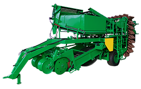 Двухрядный прицепной картофелеуборочный комбайн ККР-2 является полунавесным агрегатом, приводимым в действие с помощью вала отбора мощности трактора. Комбайн предназначен для уборки картофеля посаженного картофелепосадочной техникой с междурядьем 70 - 75см на лёгких и средних почвах с относительной влажностью до 30%, на полях засорённых камнями размером не более 50мм с общей массой ботвы и сорняков до 6т/га, урожайностью картофеля 100 – 500ц/га. Комбайн агрегатируется с тракторами МТЗ-80-82, МТЗ-100-102, оборудованными ВОМ с частотой вращения 545об/мин. Картофелеуборочный комбайн ККР-2 имеет платформу для наблюдения за процессом работы, чтобы можно было визуально контролировать качество уборки и состояние корнеплодов. В результате работы данной картофелеуборочной машины в приемном бункере накапливается ворох картофеля, который подлежит дальнейшей обработке при помощи картофелесортировальных машин. Наша компания производит широкий ассортимент такого оборудования: