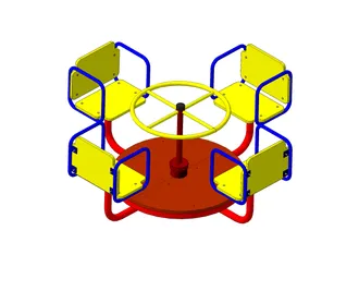 Карусель с рулем - это вид детского игрового оборудования для площадок, представляющий собой вращающуюся платформу с сиденьями и рулем в центре, который дети используют для вращения, развивая координацию, вестибулярный аппарат и физическую силу, превращая обычную прогулку в веселое приключение. Она укрепляет мышцы рук и спины, помогает потратить энергию и отвлекает от гаджетов, принося радость и пользу здоровью. Диаметр описываемой окружности - 1500мм. Высота - 735 мм.