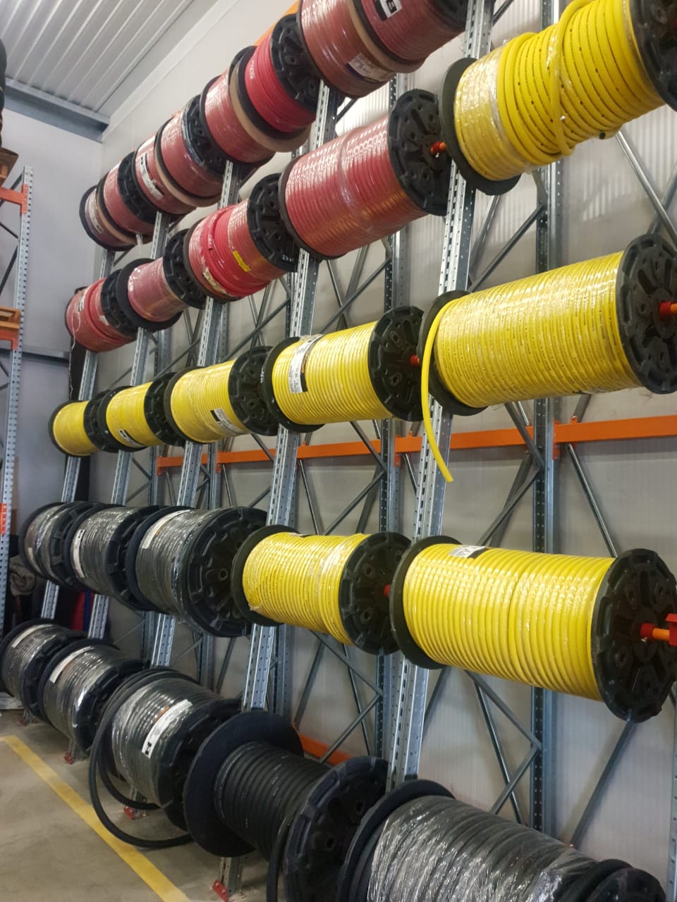 Катушечные стеллажи применяются для хранения катушек большого ассортимента диаметров. Стеллажи позволяют на ограниченной площади разместить большее количество катушек, сохраняя доступность каждой катушки в любой момент времени. в случии необходимости позволяют отматывать кабель не снимая катушки со стеллажа