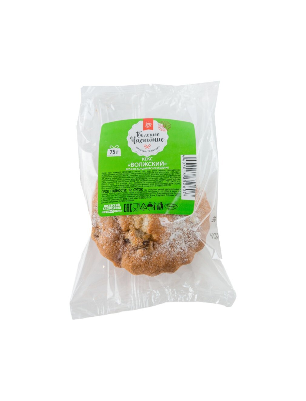 Кекс "Волжский" - это эталон классического кондитерского изделия, который подарит вам моменты истинного наслаждения. Созданный по традиционной рецептуре, он обладает той самой идеальной рассыпчатой текстурой и богатым сдобным вкусом, знакомым с детства. Основу кекса составляет пшеничная мука высшего сорта и отборные куриные яйца, что делает мякиш нежным и золотистым. Главным украшением вкусовой палитры является обилие отборного изюма (сушеного винограда), который придает десерту приятную сладость и сочность. Особое очарование выпечке дарит гармоничное сочетание ароматов благородного рома и нежного сливочного масла, создающее атмосферу уюта и тепла. Завершающим штрихом является изящная посыпка из белоснежной сахарной пудры, которая подчеркивает праздничный вид изделия. Благодаря сроку годности 12 суток, кекс долго сохраняет свою свежесть и мягкость, оставаясь идеальным дополнением к семейному чаепитию, встрече гостей или сладкому перекусу в течение дня. Насладитесь проверенным временем качеством и безупречным вкусом кекса "Волжский".