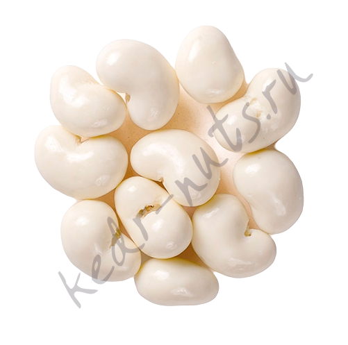Состав: шоколадная глазурь белая(сахар, какао масло, сухие молочные продукты, ванилин), кешью жареный