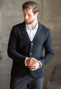 Мужской кардиган JB плотной вязки из хлопковой пряжи с глубоким вырезом, внесёт в образ своего обладателя немного респектабельности и солидности. Изделие отлично смотрится с рубашкой, водолазкой или футболкой, можно сочетать как с брюками, так и с джинсами любого фасона.