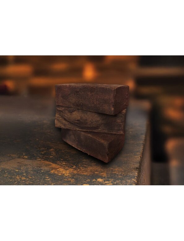 Кирпич ручной формовки Теллура Агат империал представляет собой сложную смесь оттенков, создающую эффект состаренности и глубины. Основной тон - насыщенный красно-коричневый, напоминающий обожженную глину. Однако, каждый кирпич имеет свои уникальные цветовые вариации: