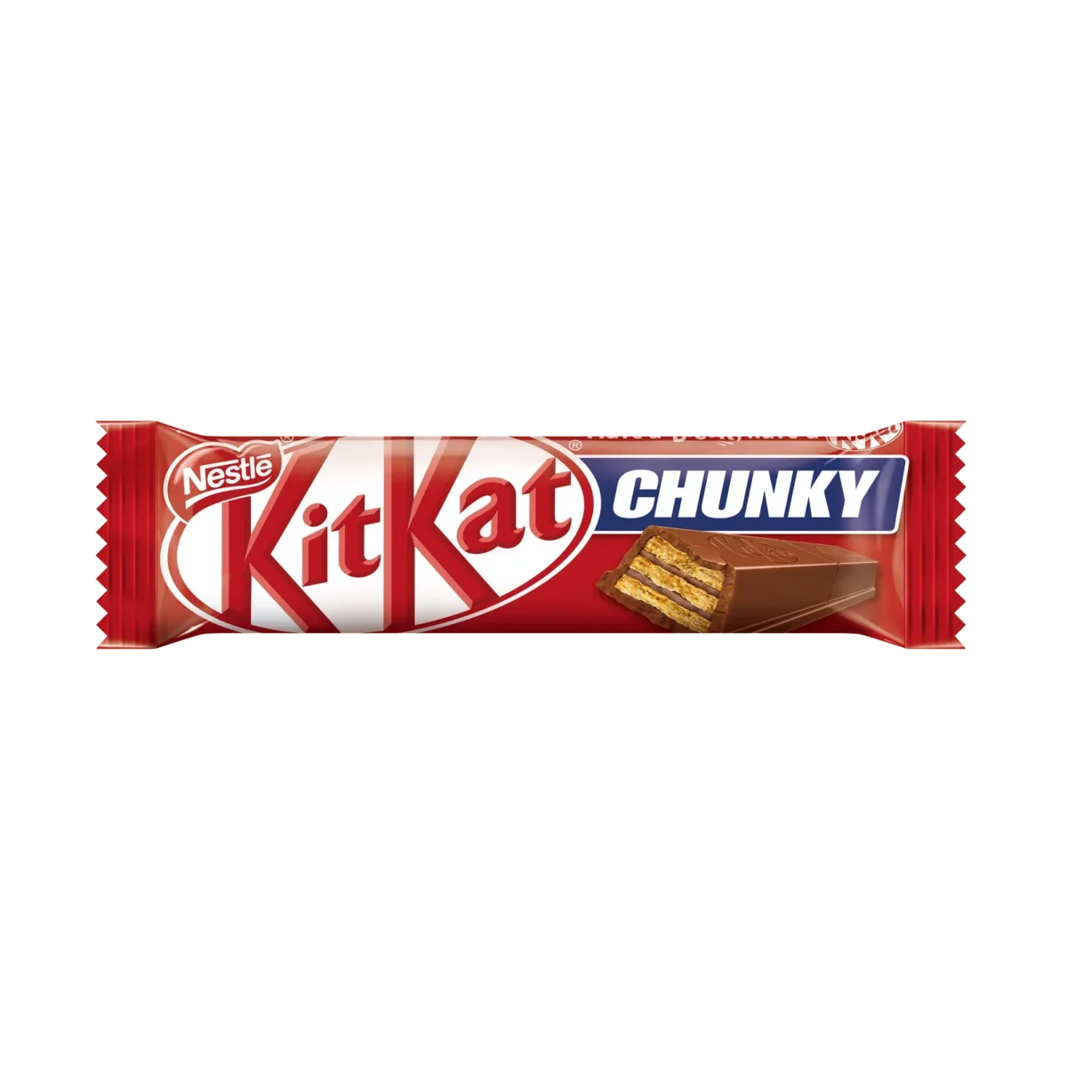 KitKat Chunky — это шоколадный батончик увеличенного формата, в котором хрустящие вафли сочетаются с нежной начинкой из бархатного арахисового масла, покрытые молочным шоколадом. Идеальное предложение для тех, кто ищет сытный и вкусный перекус, чтобы быстро восстановить энергию в течение дня.