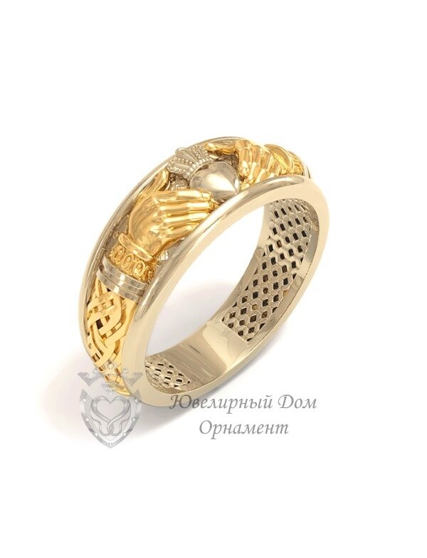 Кладдахское кольцо из комбинированного золота - это традиционный ирландский символ дружбы, любви и верности, выполненный из сочетания двух или более цветов золота (обычно желтого, белого и красного). Оно изображает две руки, держащие сердце с короной, и служит символом помолвки, брака или вечной преданности, отличаясь современным стилем и высокой сочетаемостью с другими украшениями. Данное кольцо часто используется как обручальное кольцо, символизируя глубокие чувства и верность, может дариться близким друзьям в знак крепкой связи, а также может дарится на совершеннолетие или передается по наследству от матери к дочери. Вес изделия - 7,6 гр.