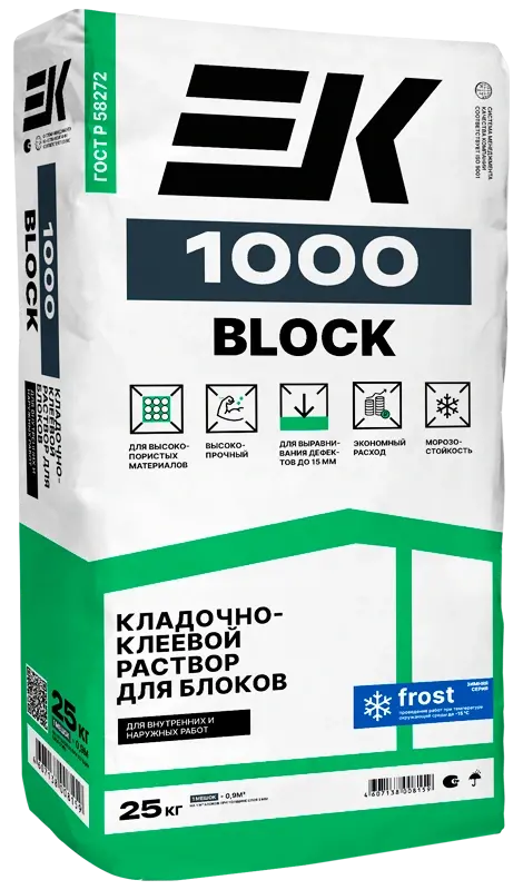 Кладочно-клеевой раствор для блоков (зимняя версия) ЕК 1000 BLOCK FROST (G M50)