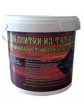 Клей для плитки из талькохлорита - это специализированный термостойкий состав (часто на основе порошка талькохлорита и жидкого стекла), предназначенный для монтажа плитки из "мыльного камня" на печи, камины и в бани. Он обеспечивает надежную фиксацию, выдерживает температуры до , аккумулирует тепло и устойчив к перепадам температур. Вес - 1,5 кг.