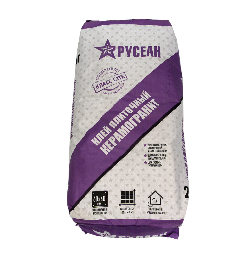 КЛЕЙ ДЛЯ ПЛИТКИ КЕРАМОГРАНИТ В МЕШКАХ ПО 25 КГ (РУСЕАН)