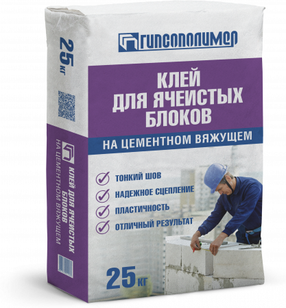 КЛЕЙ ДЛЯ ЯЧЕИСТЫХ БЛОКОВ цементный предназначен для монтажа плит и блоков из ячеистого бетона (газобетона, пенобетона), блоков из силиката, пазогребневых блоков, кирпича. Для заделки выбоин, сколов монтажного материала глубиной до 100 мм. Трещиноустойчив; шов толщиной 2 мм обеспечивает минимальный расход материала и скорость выполнения работ; предотвращает промерзание стен; увеличивает теплоизоляционные свойства конструкции.
