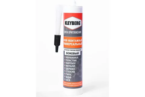 Клей монтажный Универсальный KLEYBERG на базе растворителей применяется для монтажа широкого спектра отделочных материалов и декоративных элементов из дерева, камня, мрамора, керамики, кирпича, гипса, пластика, металла, а также МДФ, ДСП на поверхности из таких же материалов, бетон, штукатурку, любые типы панелей. Характеризуется отличной адгезией и прочностью соединения. Подходит для внутренних и внешних работ.