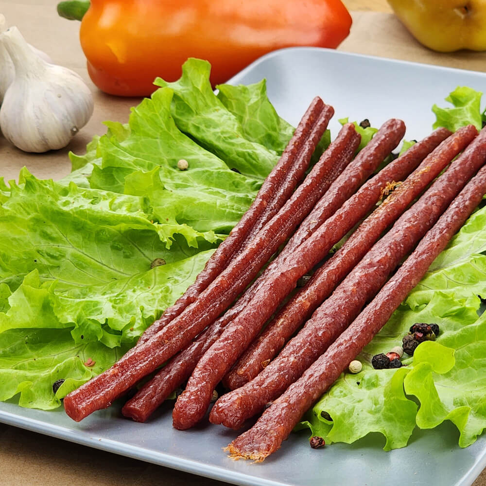 Колбаски сырокопченые произведены из натурального сырья, с выраженным вкусом и ароматом. Отлично подходят как закуска к пенному и как сытный перекус. Упаковка - флоупак.