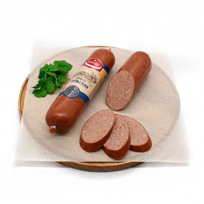 Колбаса аульская – вкус этой колбасы переносит в атмосферу детства, проведённого в ауле. Сочетает в себе вкус мяса птицы и тщательно подобранных специй. Черный перец придает пряный вкус, белый перец насыщенный аромат, сладковато-острые нотки и горчинку добавляют кардамон, тертый мускат и паприка. Виноградный сахар создает почти незаметную сладость, смягчая все вкусы. Древесно пряный аромат кориандра дополняет эффект копчения. Процесс изготовления полукопченных колбас включает в себя несколько видов термообработки. Готовый фарш обжаривается, затем варится и после коптится. Копчение происходит на щепе бука. Канцерогенные примеси полностью отсутствуют в дыме этой щепы. Повышенное количество антибактериальных свойств буковой щепы позволяет увеличить время хранения полукопченных колбас. Оболочка колбасы - фиброузная. Проницаемость оболочки позволяет обеспечить высочайшее качество копчения.