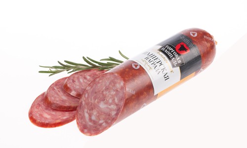 Состав: свинина, говядина, шпик, вода, шкурка свиная, клетчатка растительная, стабилизаторы, нитритно-посолочная смесь, белок молочный, загуститель, белок животный свиной, пряности (перец черный,орех мускатный, имбирь), регуляторы кислотности, сахара, усилитель вкуса и аромата, антиокислители, ароматизаторы, консерванты, краситель пищевой. Сроки годности: при t от 0°С до +6°С и относительной влажности воздуха 75-78%, продукт, упакованный с использованием вакуума - 40 суток. Вес нетто: 380 г; весовая: ≈ 600 г