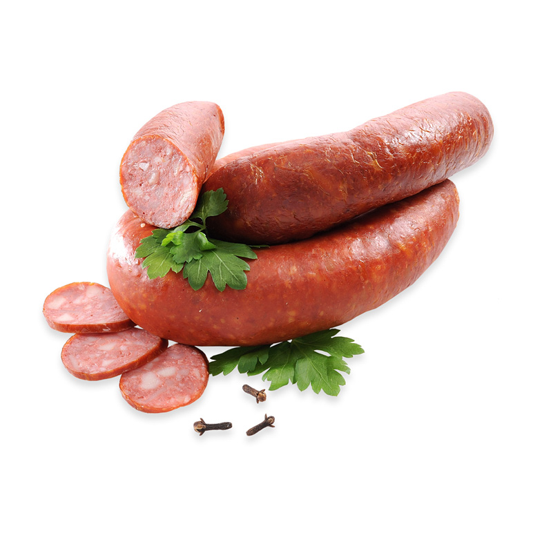 В натуральной череве, с добавлением чеснока, перца, кориандра.