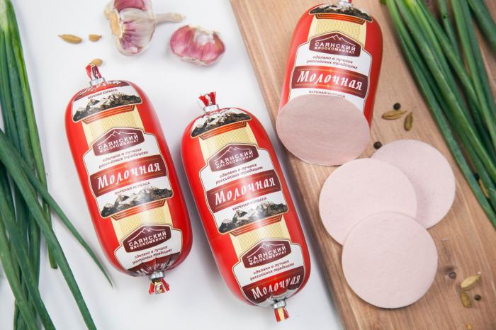 свинина, говядина, вода, молоко коровье сухое обезжиренное, яичный порошок, крахмал, соль поваренная пищевая, стабилизатор фосфаты, сахар-песок, перец черный, перец душистый, кардамон, антиокислитель аскорбинат натрия, фиксатор окраски.