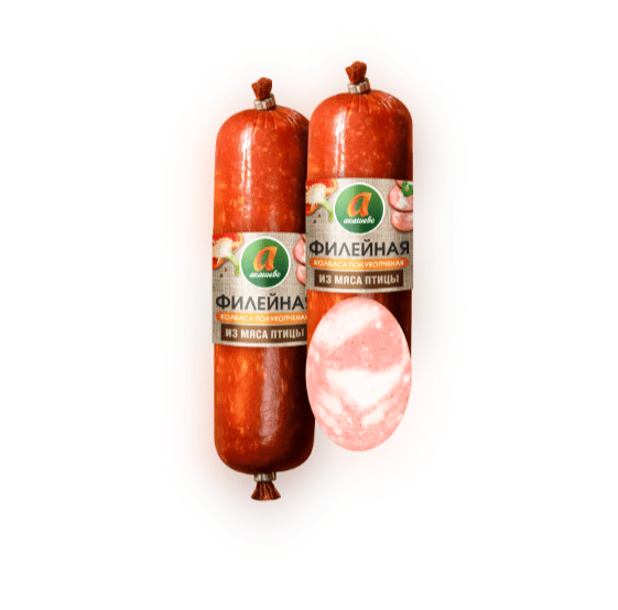 Колбаса полукопчёная «Филейная» от ООО “Птицефабрика Акашевская” имеет изысканный вкус и нежную текстуру за счет использования куриного филе и ароматных пряностей. Идеально подходит для приготовления мясных нарезок и холодных закусок.