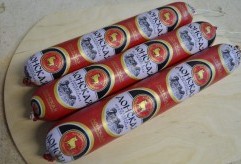 Колбаса полукопченая Донская – это продукт из отборного мяса с прекрасной структурой, аппетитным внешним видом и восхитительным вкусом, благодаря тщательно подобранным специям. Прекрасно подойдет в качестве нарезки для повседневного стола, с ней можно приготовить различные салаты, бутерброды и тосты. У продукта плотная, удобная для нарезки текстура и ярко выраженный подкопченный вкус. Колбаса освежит и обогатит вкус многих привычных блюд. Прекрасно подходит в качестве легкой закуски.